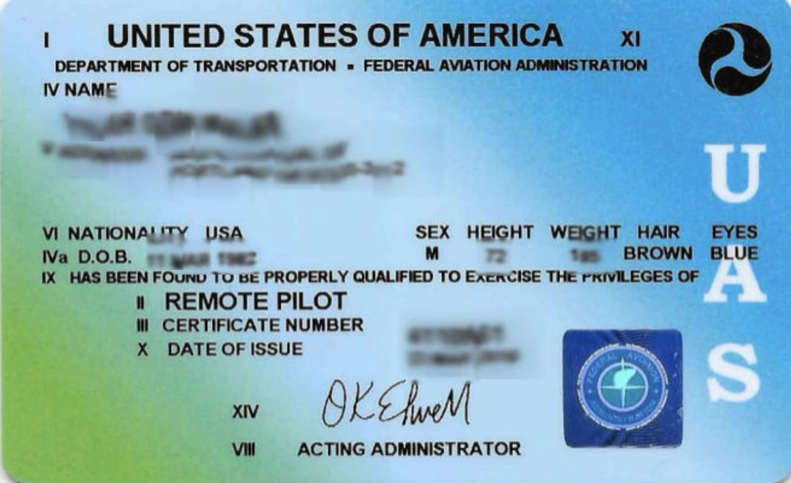 • Part 107 Remote Pilot Certificate: This certification is for commercial drone operators. To obtain it, you need to pass the Part 107 exam, which is a 60-question test that covers topics such as airspace regulations, weather, and safety procedures, etc. As a real estate agent, you should desire that the drone pilot shows you this certificate. Note: pay attention to the issue date as it doesn’t include an expiration date. However, each drone pilot who flies under Part 107, must take a recertification test every two years. So, it’s a good practice to make sure that you ask the drone pilot to provide there current (Part 107 Small Uas Recurrent – Certificate of Achievement documentation).