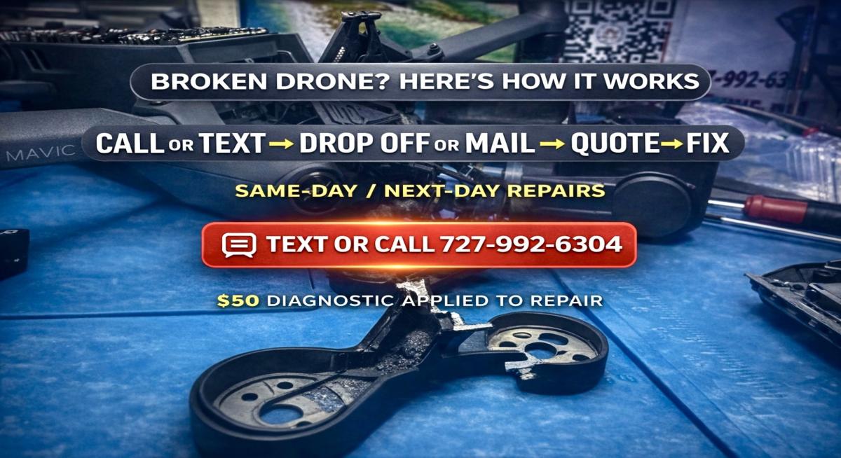 For drone owners dealing with issues such as gimbal errors, ESC failures, camera malfunctions, firmware problems, or crash damage, DroneEverything.net offers a reliable and efficient repair solution. The combination of local service, fast turnaround, and accurate diagnostics makes it a top choice for drone repair in the Tampa Bay area.