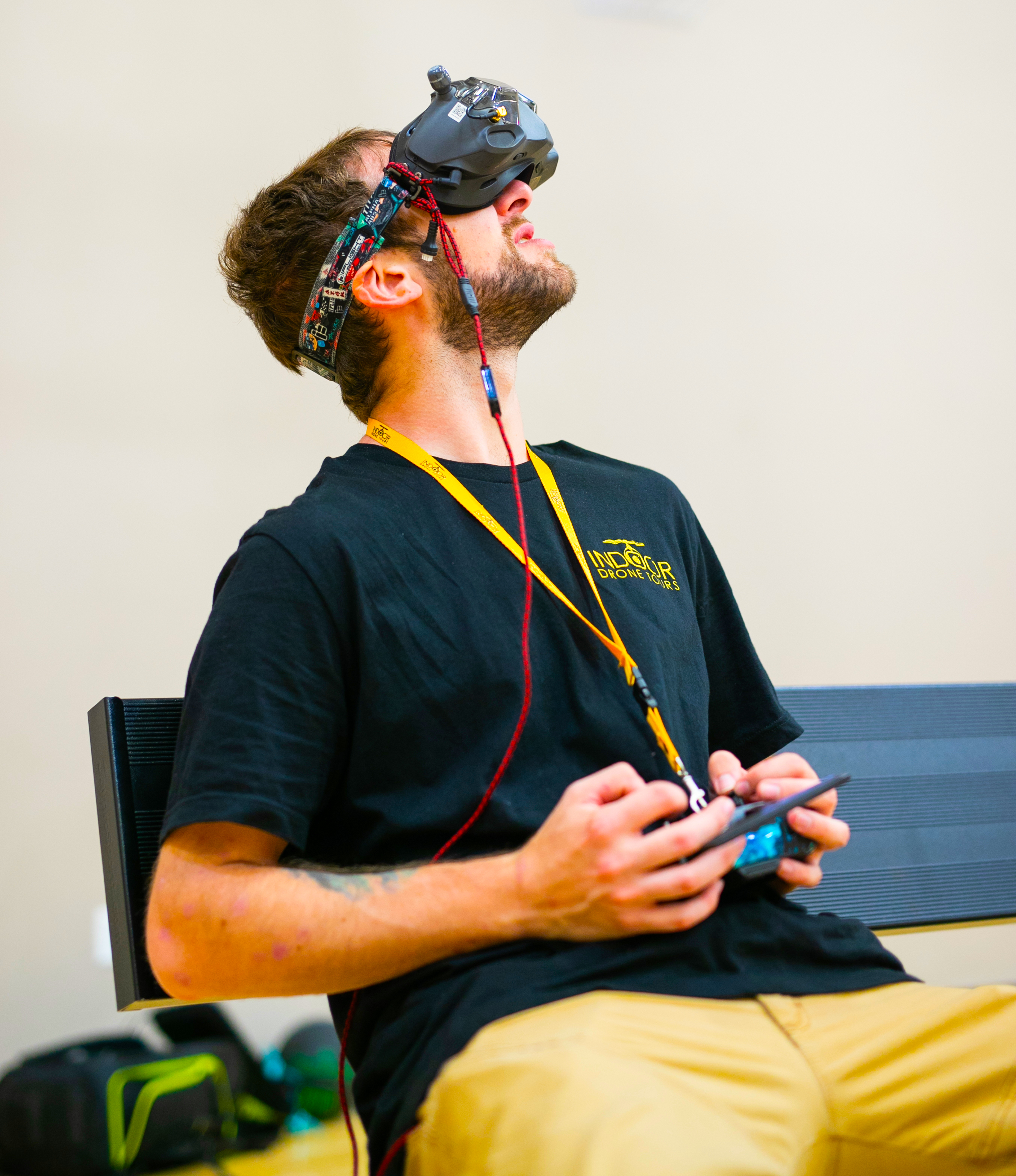 Most of these drones—including the FPV drones that fly inside—connect to a pair of virtual-reality-like goggles that allow the pilots to see what the drone sees. This is how they can navigate around the property, flying room to room and up and down stairs with ease.