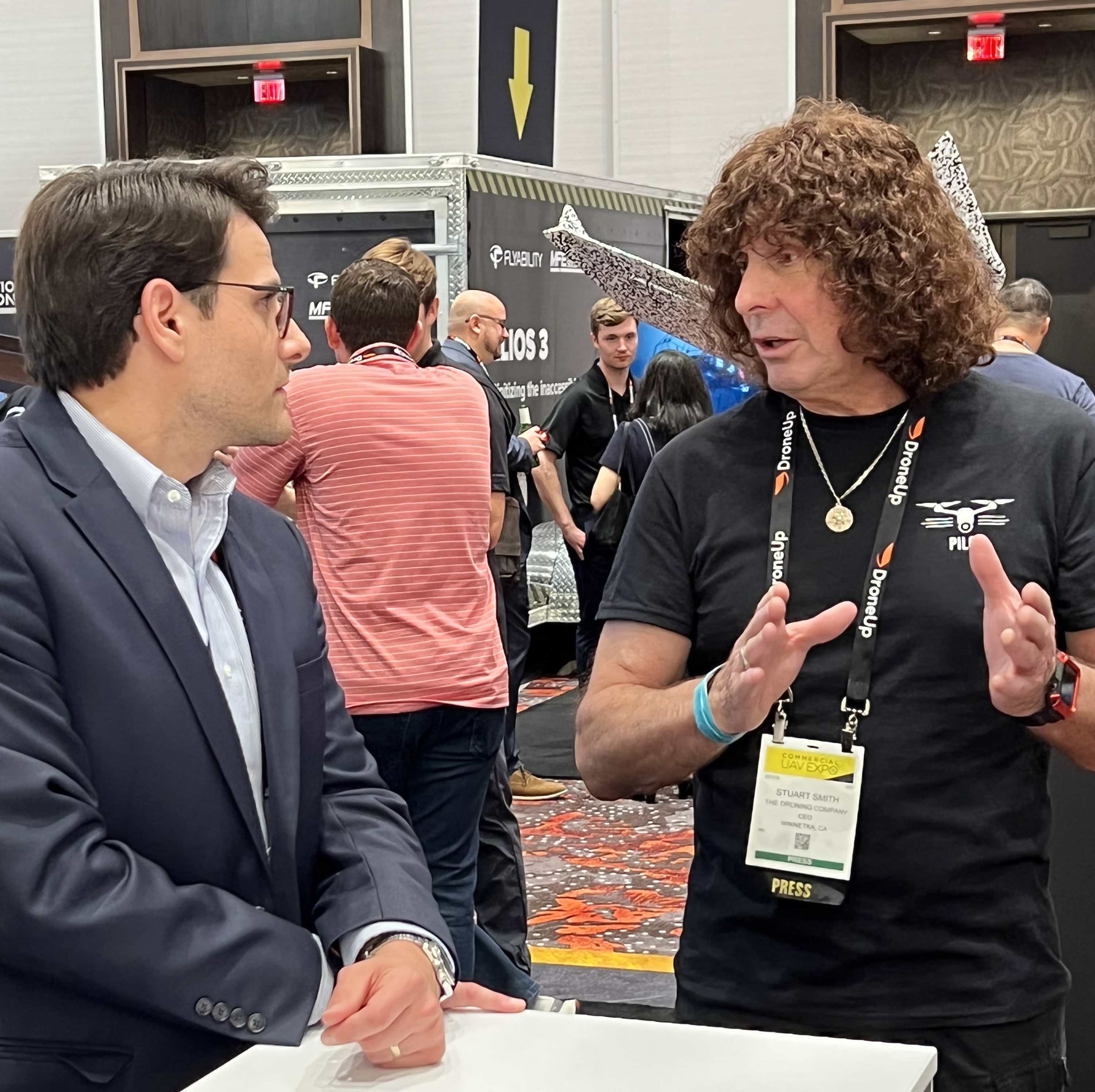 Above: The Droning Company founder/CEO Stuart Smith speaking to Barrett Mooney, CEO of AgEagle.