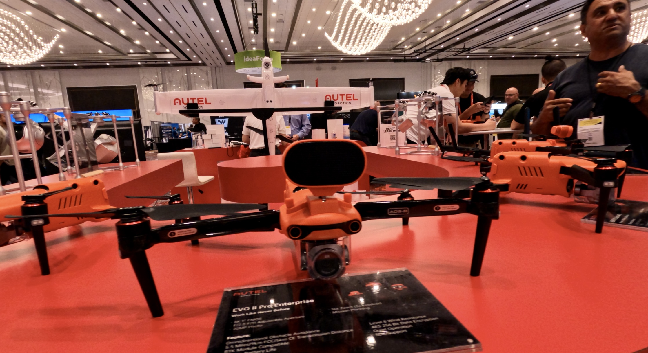 The day started off strong as we visited our friends at Autel Robotics booth to talk a little bit about the Dragonfish drone and its potential applications with Autel’s Global Vice President of Technology & Training, Jon McBride. We discussed all manner of applications for this impressive piece of enterprise drone technology including search and rescue, long range data collection, intelligent flight systems, flight application interface, after-sale training and support, and more.