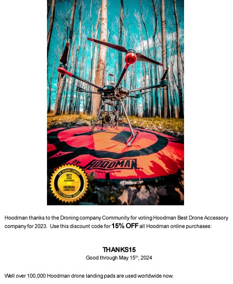 Hoodman thanks The Droning Company community for voting Hoodman “Best Drone Accessory” and would like to offer a 15 percent off discount to their readers for all Hoodman products (good through May 15, 2024):