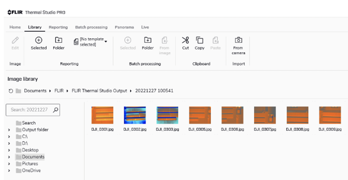 Thermal Studio’s batch processing function is a tremendous time saver for drone pilots. Batch processing empowers the user to select multiple images to process, then apply the same color palette, temperature scale, temperature measurement parameters, and more to the entire dataset in seconds. This can save hours preparing images for reports and entire datasets for stitching.