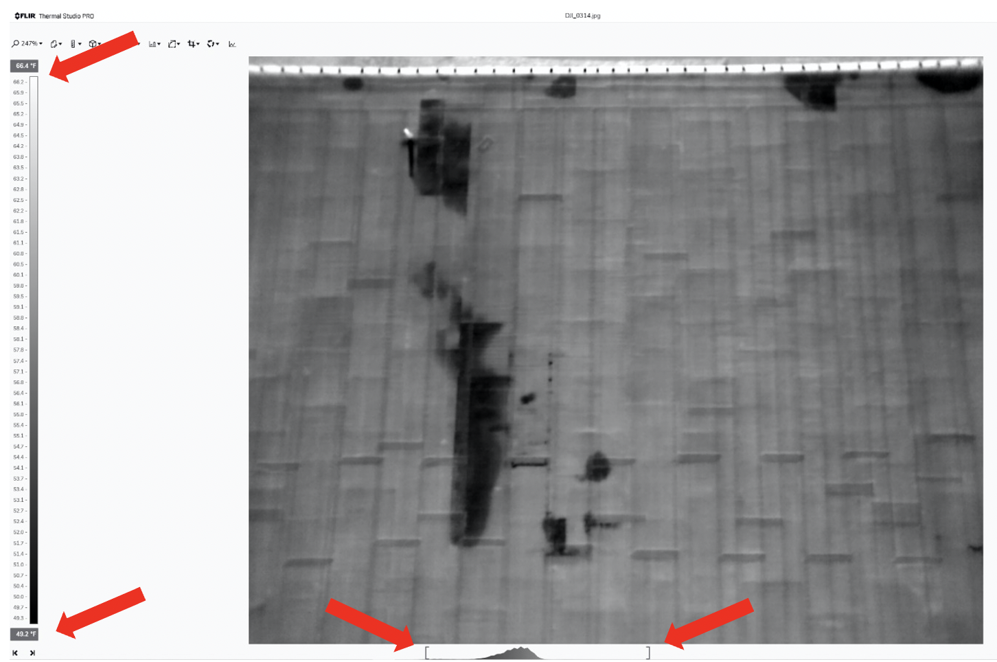 Roof with adjusted span of 49.2°F -66.4°F enhances thermal anomalies that may denote an issue.