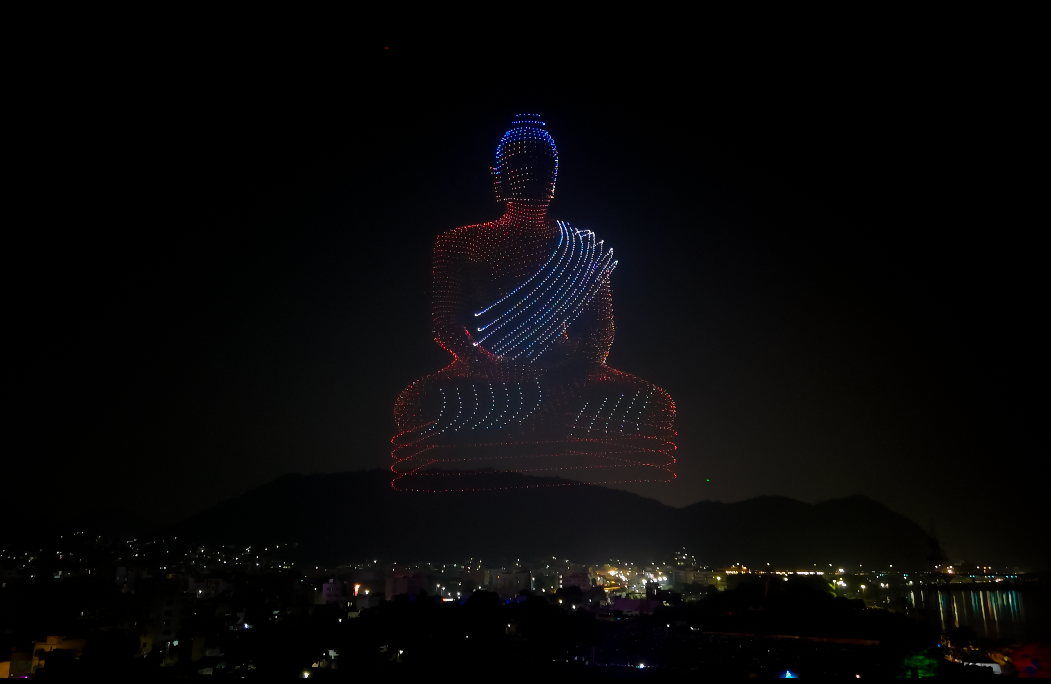 - Largest Aerial Landmark Display Formed by Multirotors/Drones – The creation of the Amaravati Buddha Stupa in the sky not only honored India’s cultural heritage but also demonstrated the power of drone technology to craft detailed and intricate structures in the sky.