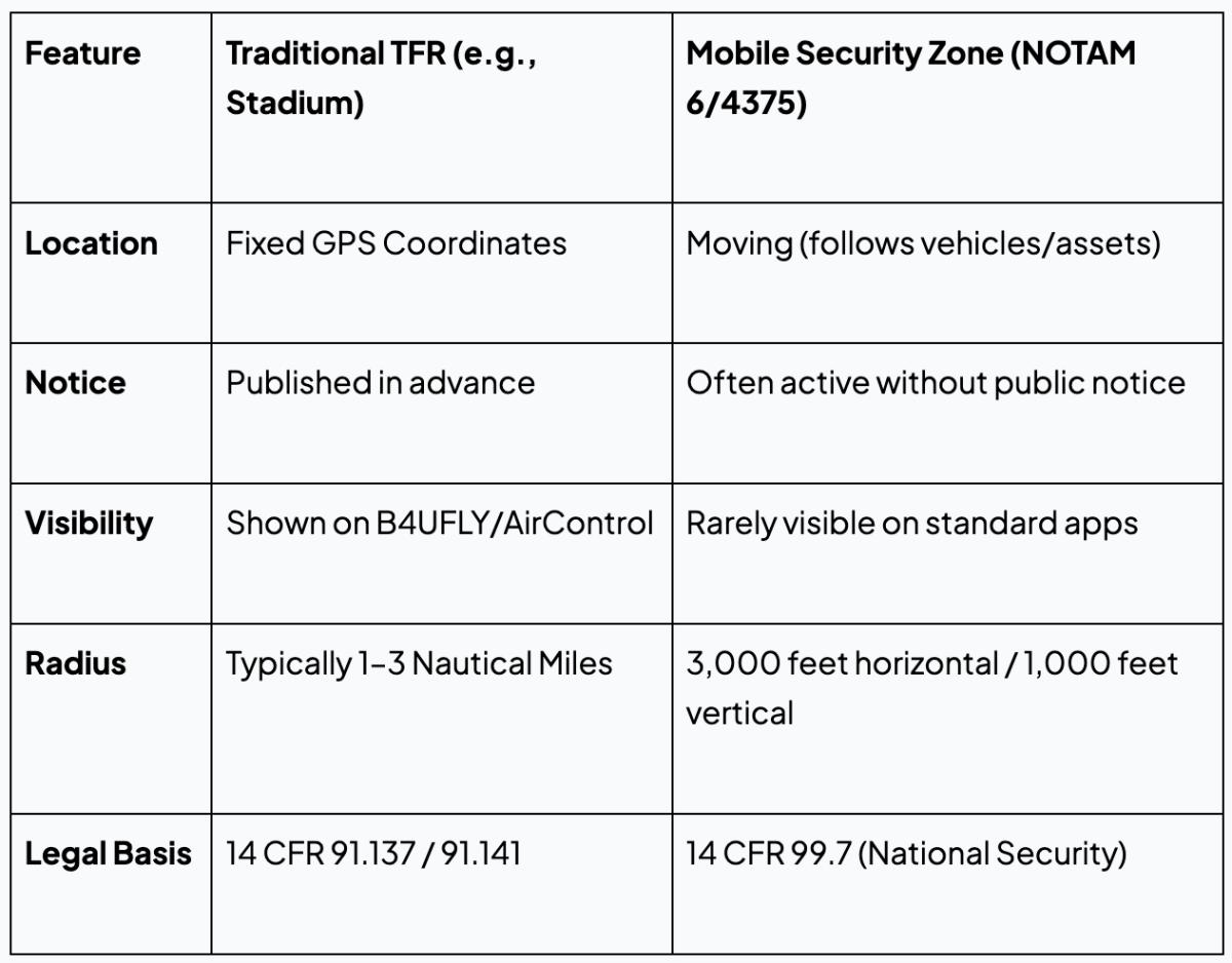 Summary Table: Traditional TFRs vs. New Mobile Security Zones