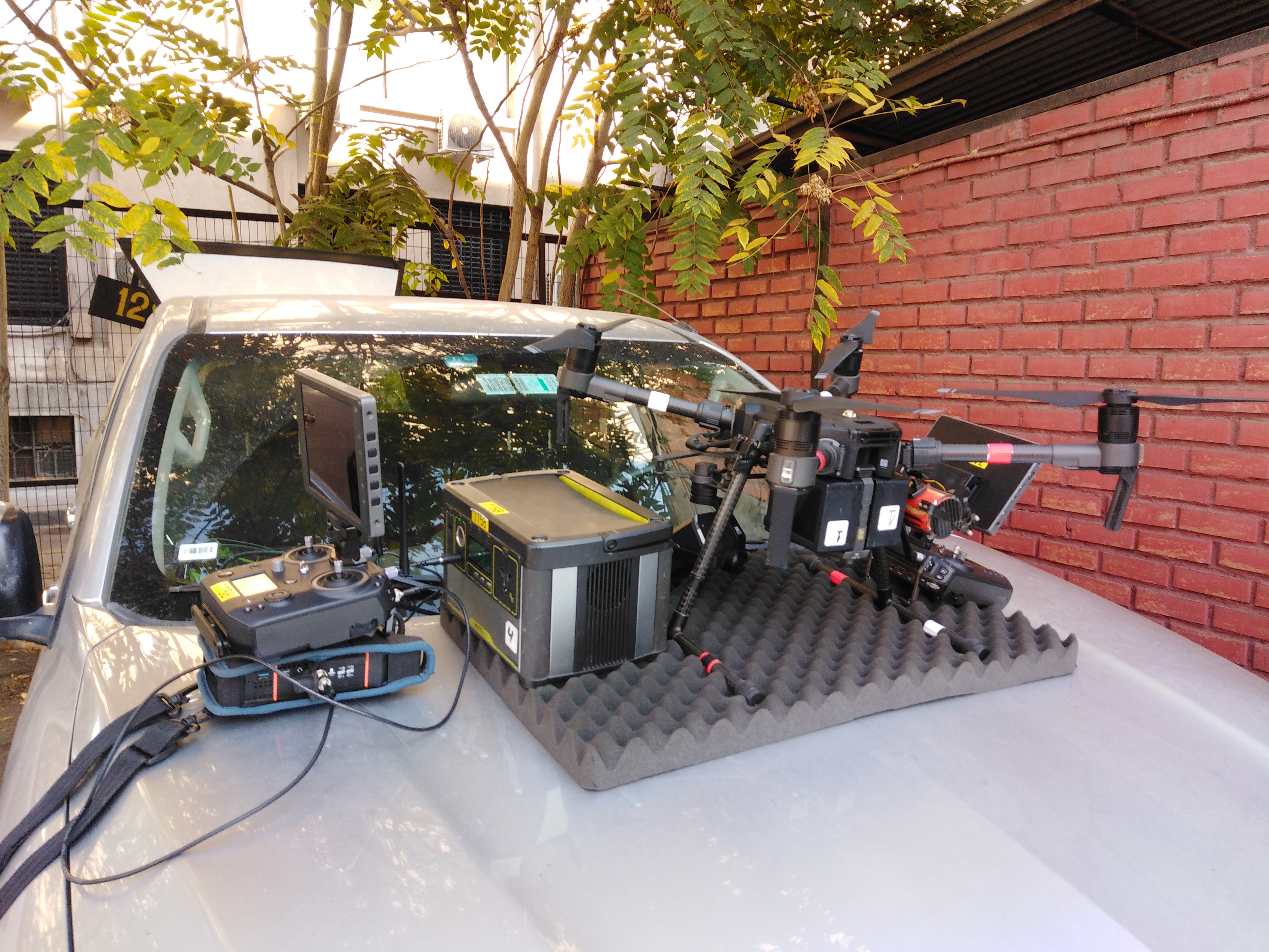 Rig, circa 2019: DJI Matrice 210 (later updated to Matrice 300 RTK), liveU broadcast system with two controllers, 32 batteries—TB55 for 16 flights, 5.5 hours of flight time by shift.