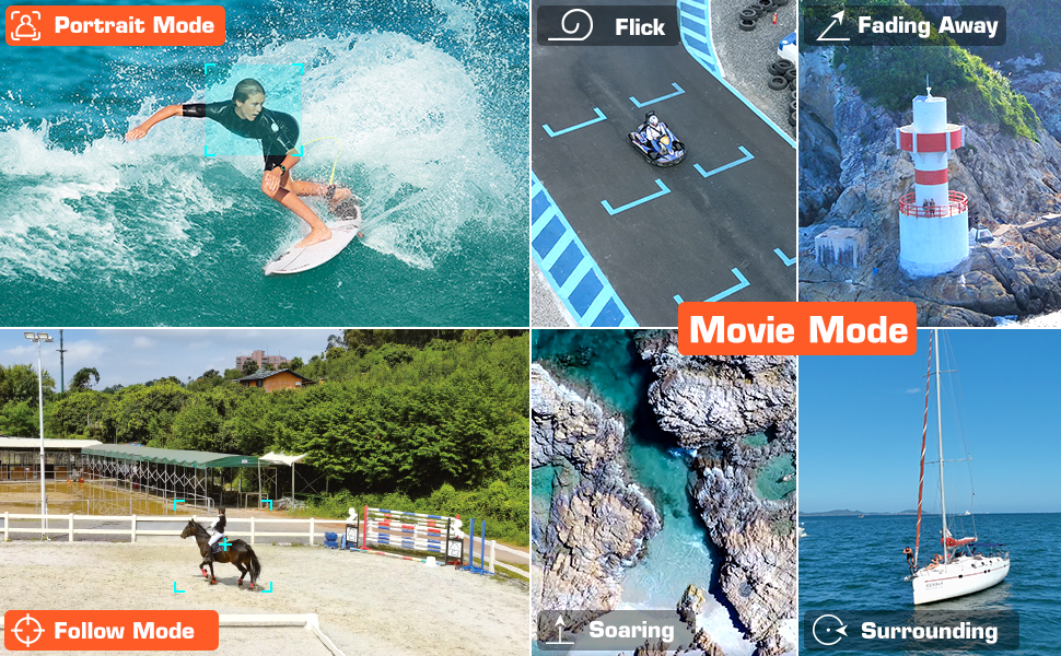 Fade-Away. A typical pull-back shot. The operator selects a subject by clicking and dragging a box around it. The drone locks onto this subject and begins moving backwards and upwards away from the subject, creating a reveal-style shot.