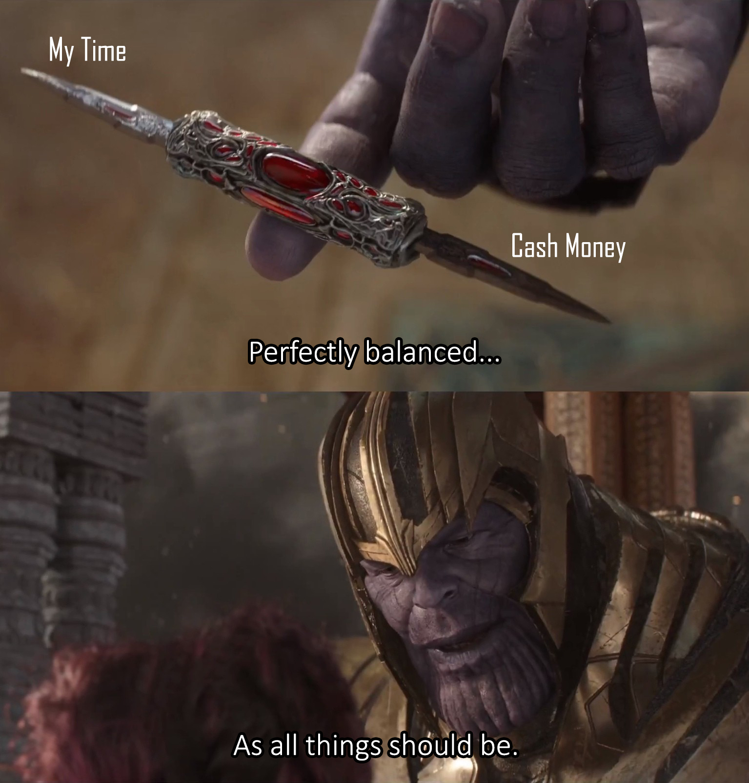 On a per-job-basis you can decide just how much to charge for speedy turnarounds without adjusting your base rate. I call this “exception pricing” because it is pricing that falls outside of your normal charges. I value my time more than I do money (which is ironic because time is money in almost all situations). For that reason, I limit the hours in which I work on a project unless it is my own personal passion project. I am not somebody who typically pulls all-nighters or skips meals to complete a project—not because I don’t care about what I do, but because I believe in balance above all else (cue the Thanos memes).
