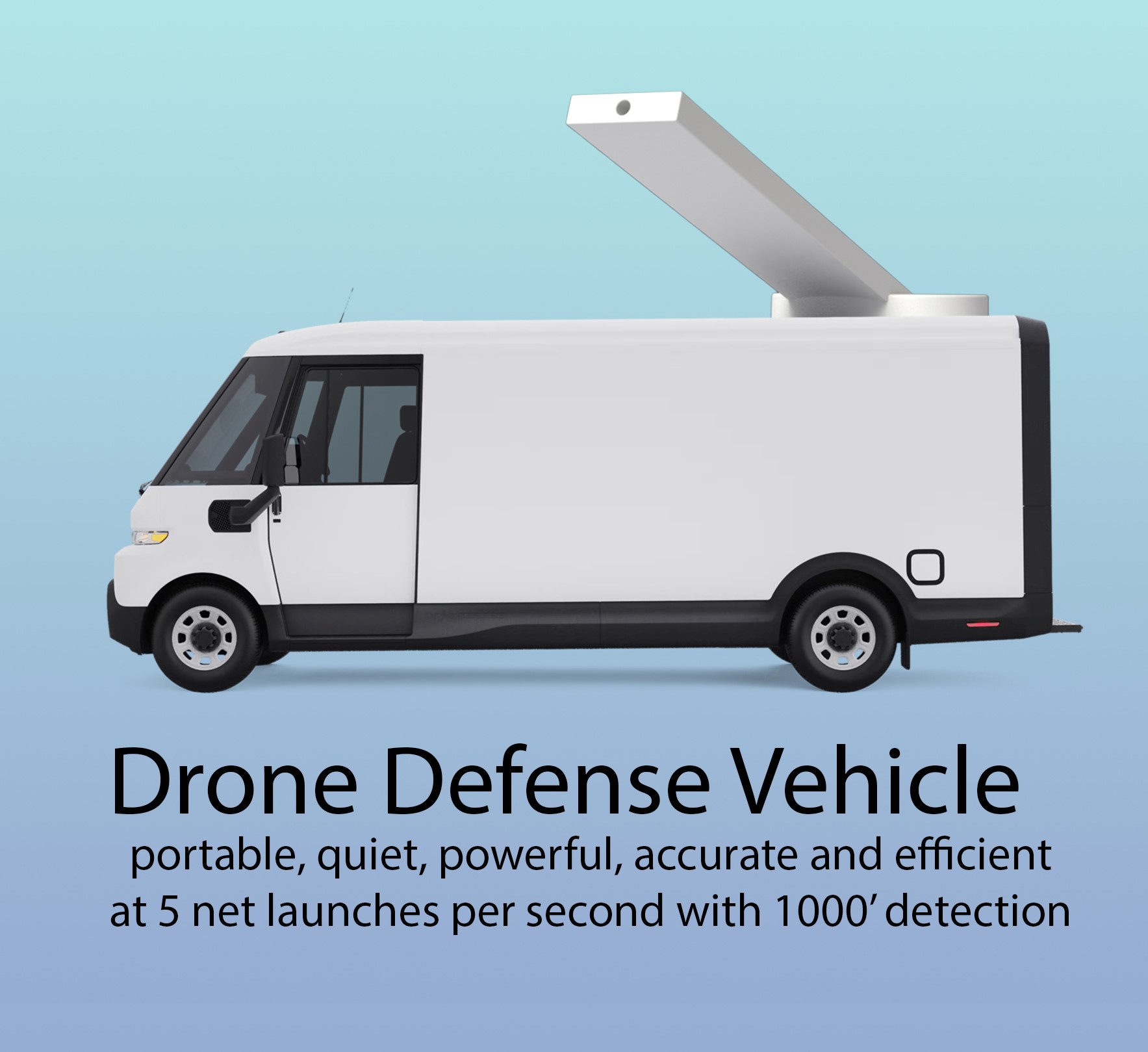 Hall's system is transported in, and functions from an inconspicuously designed launcher, totally enclosed for transport. The tracking system is equipped with AI-powered target identification capability with a range detection ability of over 1,000 feet. Once a high-speed aerial object such as a drone is identified and tracked, Hall's innovative launch system fires projectiles equipped with nets semi-automatically at 5 nets per second. The nets are each 20' in diameter to envelop and neutralize a drone. Once captured, a parachute emerges from the net to safely land the netted bundle.