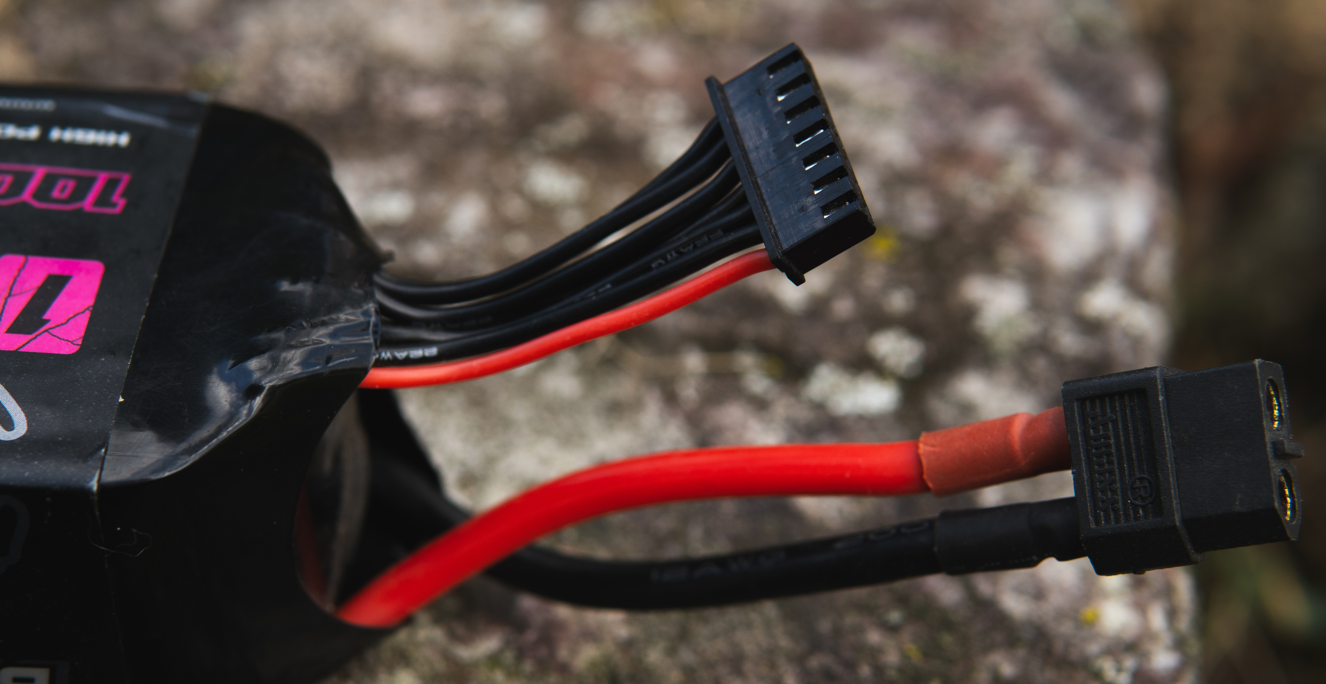 Battery Connections. LiPo batteries will typically feature two connectors: the main power connection (usually an XT60 or similar plug) and a balance lead. The balance lead will look slightly different depending on what type of battery you’re charging, 4s or 6s, with an additional wire going to the lead with each additional cell in the battery. The main connector is used for charging and discharging the battery, while the balance lead ensures that each cell within the battery maintains an equal charge, in other words, it “balances” the cells. If the battery cells started charging at 3.2v but for some reason one cell started charging at 3.5v, without a balance lead that cell would end up getting over charged and potentially cause damage to your battery.