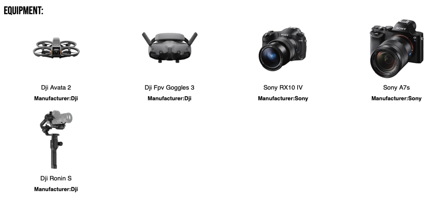 Displaying good pictures of your equipment will let more decerning clients know at a glance if you are right for their job. Rather than try to take pictures of your drones and cameras yourself, just go to Amazon and screenshot their photos. They’ve already done the work for you. Also, if you have equipment other than drones—such as professional cameras—add those as well, because clients could want you to supply them with still shots in addition to drone video footage.