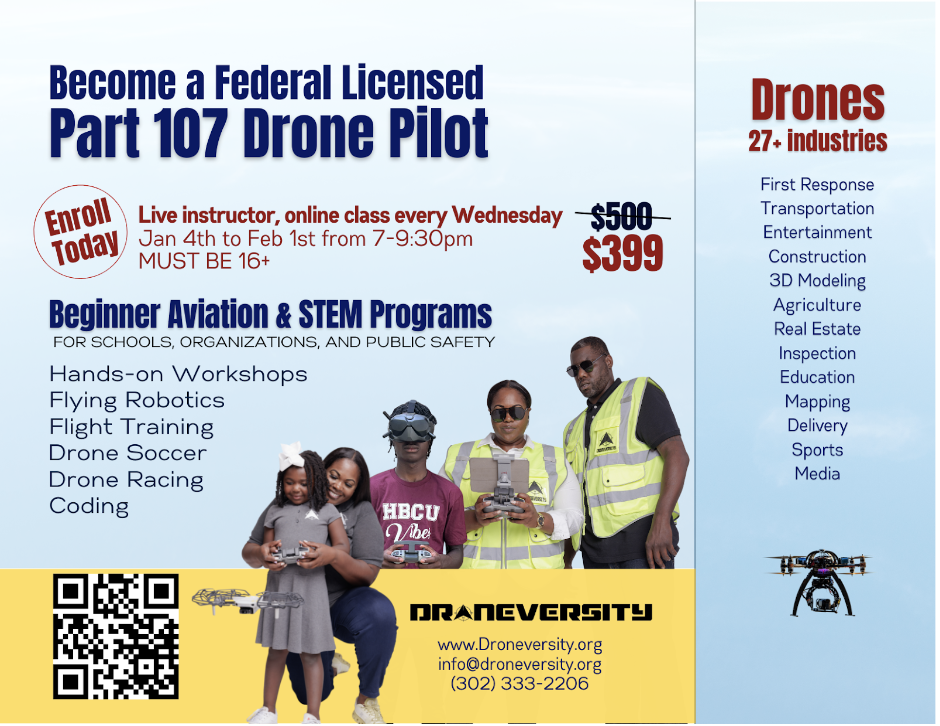 In the past if you weren’t related to a pilot, knew a pilot, or if you were not in the military, the chances of becoming a pilot or having any type of aviation career was slim. The aviation industry is currently experiencing a shortage of crewed pilots and aviation support, and it needs educated, skilled remote pilots. The mission of Droneversity is to help alleviate this shortage by addressing the inequity of opportunity,