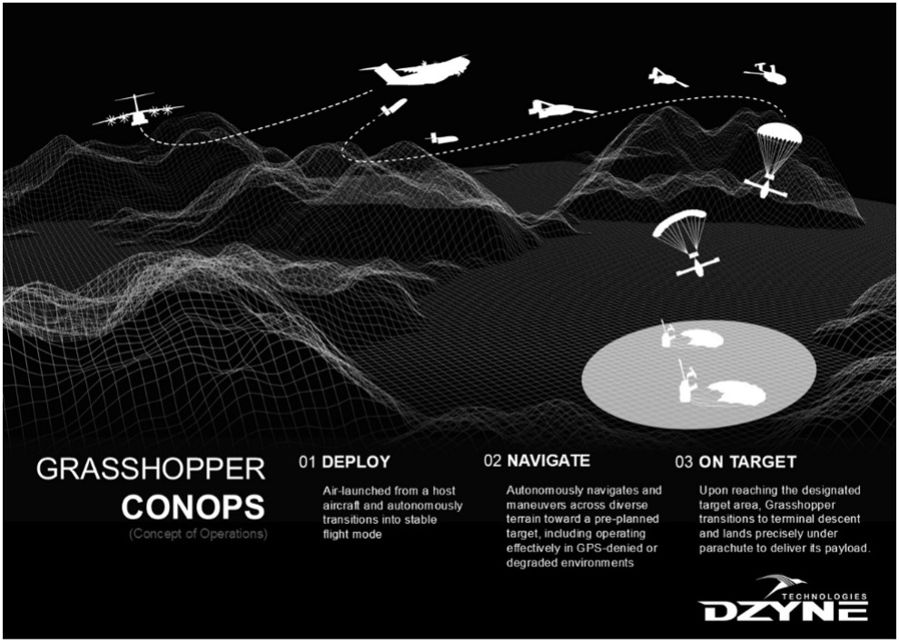 "The delivery of Grasshopper is a testament to the success of our collaboration with the Air Force in developing an autonomous resupply solution that meets the demands of contested environments," said Matthew McCue CEO of DZYNE Technologies. "By working closely, we were able to design and refine the Grasshopper product line into a cost-effective, high-performance aerial logistics platform. This milestone underscores the impact of this partnership, and the critical role Grasshopper will play not only in contested logistics but also in humanitarian aid and disaster relief operations, where rapid, precise, and unmanned delivery of critical supplies can save lives."