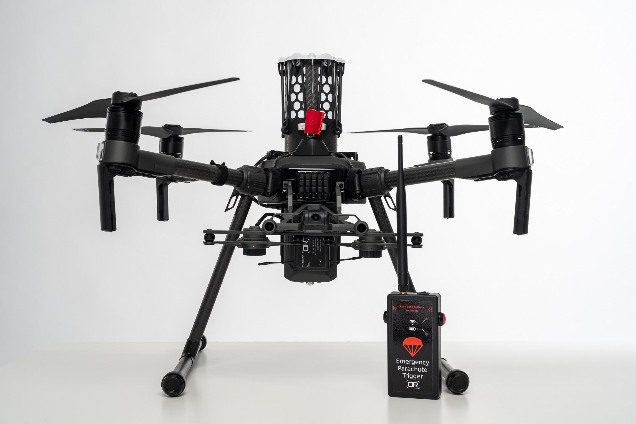 Pyrotechnic deployment. This system uses explosives to eject the parachute. It is a medium-weight solution but has powerful ejection. However, the reaction force can damage the drone. Some countries require special licenses/certificates to handle explosives, and classification of these systems as “dangerous goods” might limit travel (especially air travel) and shipment.