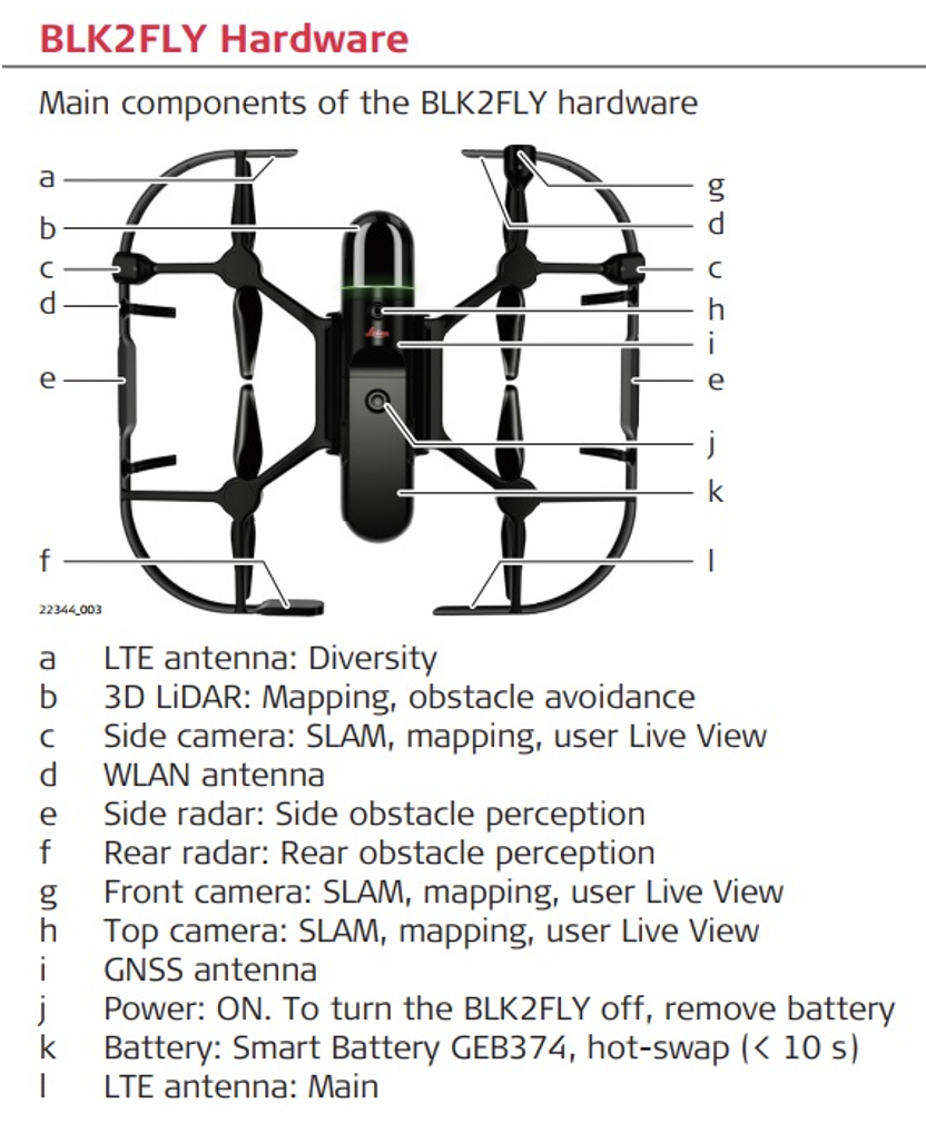 The BLK2FLY was developed by Leica Geosystems AB in Switzerland and is the culmination of Leica’s extensive experience in high precision and precise positioning sensor technology. Leica Geosystems has combined optical imaging sensors, three dimensional LiDAR laser scanning, high precision GPS positioning, high frequency radar detection, and internet connectivity sensors and fully integrated them using artificial intelligence and machine learning with the more common elements of a drone such as the flight controller and communication links.