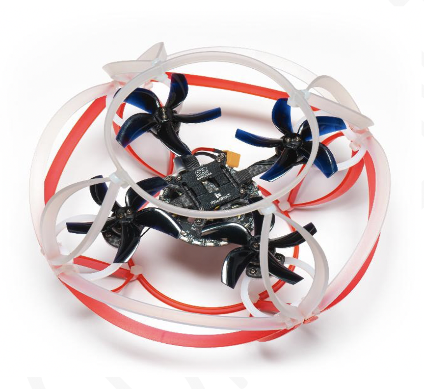 The soccer balls are drones fitted with 360-degree cages, ensuring no worries as the drones can crash without damage. The cages that surround the drones are light with different colored LED lights to identify each team’s ball. Pilots must fly the team’s soccer drone into the goal at the opposite end of the cage. Only one drone can fly through the ring, leaving the rest of the drones to attack and defend each other.