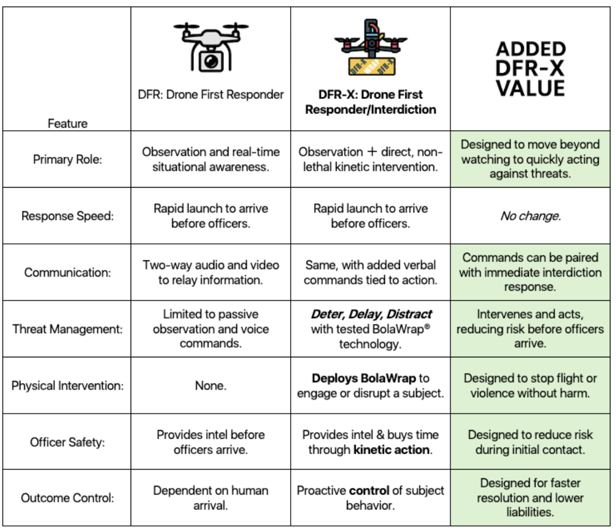 “Public safety demands tools that reduce harm while enabling lawful, effective response,” said Jared Novick, President of Wrap. “DFR-X is built around that principle — it’s meant to be used under clear operational policies, with trained personnel and strict safety protocols. Our goal is giving agencies another responsible option that improves outcomes for officers and communities.”
